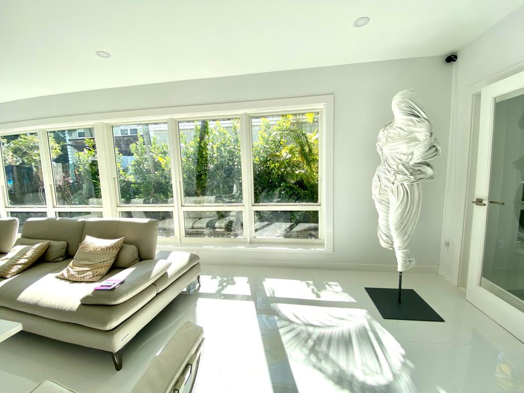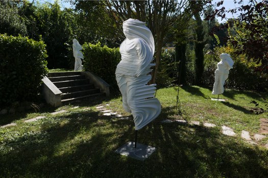 His sculptures are made in epoxy resin. They are gorgeous indoor, and absolutely perfect outdoor. And they are surprising light, compared to their solidity and strenght.